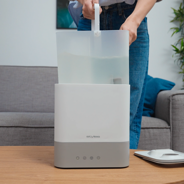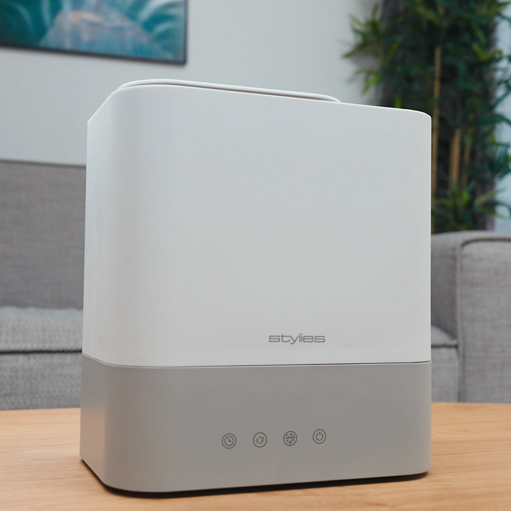 Ondanks zijn compacte en moderne ontwerp levert de Stylies Astra een indrukwekkende bevochtigingscapaciteit tot 400 ml per uur, waardoor hij geschikt is voor ruimtes tot 55 m². Als warmnevel-luchtbevochtiger verwarmt en steriliseert hij het water op hoge temperatuur, wat zorgt voor een hygiënische bevochtiging en een gezonder binnenklimaat. De Astra beschikt over twee bevochtigingsniveaus, een automatische uitschakeling bij leeg waterreservoir en een programmeertimer van 4 of 8 uur. Dankzij de aromafunctie en negatieve ionisatie draagt het apparaat bovendien bij aan een frisse en aangename lucht. Voor extra comfort is er een nachtmodus zonder storende verlichting en een handige zelfreinigingsmodus die kalkaanslag helpt verminderen. Een krachtige, veilige en gebruiksvriendelijke oplossing voor wie snel en effectief de luchtvochtigheid in huis wil verbeteren.