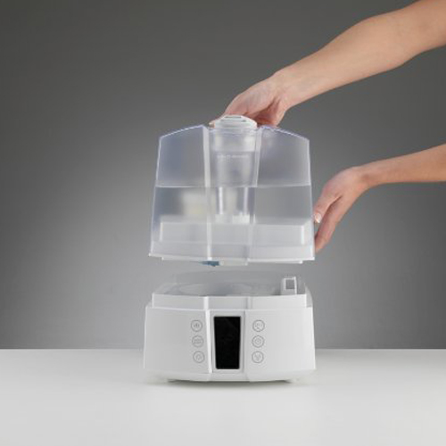 Ultrasone luchtbevochtiger: Boneco U7147 met digitale bediening. Ultrasone bevochtiging in stijl, met voorverwarming voor extra comfort. Luchtbevochtiger Boneco U7147 heeft een mooi display met verschillende indicatoren. Zijn antikalk filter zorgt voor schone bevochtiging. Verkrijgbaar in de kleuren zwart en wit!