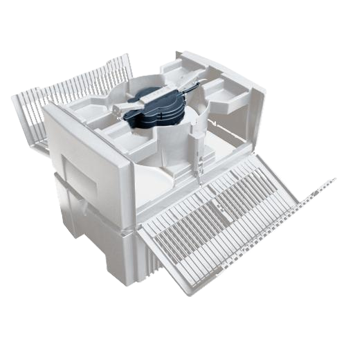 • Onderhoudsarm: Het unieke ontwerp maakt schoonmaken kinderspel. U tilt de elektrische unit en ventilator in één beweging uit de behuizing. Elke ca. 14 dagen spoelt u de waterbak en de schijvenstapel eenvoudig af – klaar is Kees.